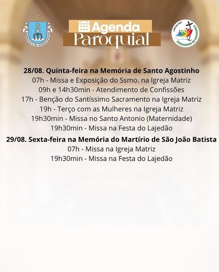 Agenda tá programação da igreja nossa senhora do bom conselho esperança PB